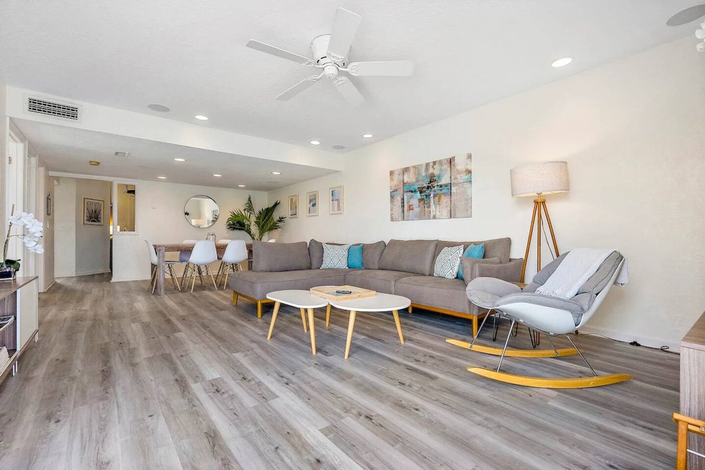 MODERN TWO FLOOR BEACH HOME Wake up with the sunshine streaming through windows over the water and end the day with picturesque sunsets over the beach. Our beach home is ideally situated on a narrow part of the island with beach access directly across the street Dozens of dining options, two large balconies, and one of Treasure Island’s (Voted Top 3) most beautiful stretches of sand, you won’t want to leave. Our spacious beach home is equipped with all of the modern luxuries for you to enjoy